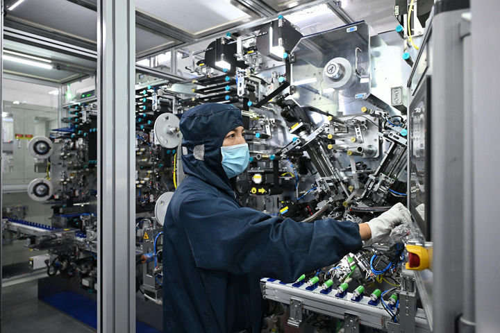 在山西阳泉ღ★,华阳新材料科技集团华钠芯能科技有限责任公司的工作人员在操控设备(2024年7月31日摄)ღ★。新华社记者 李鑫 摄
